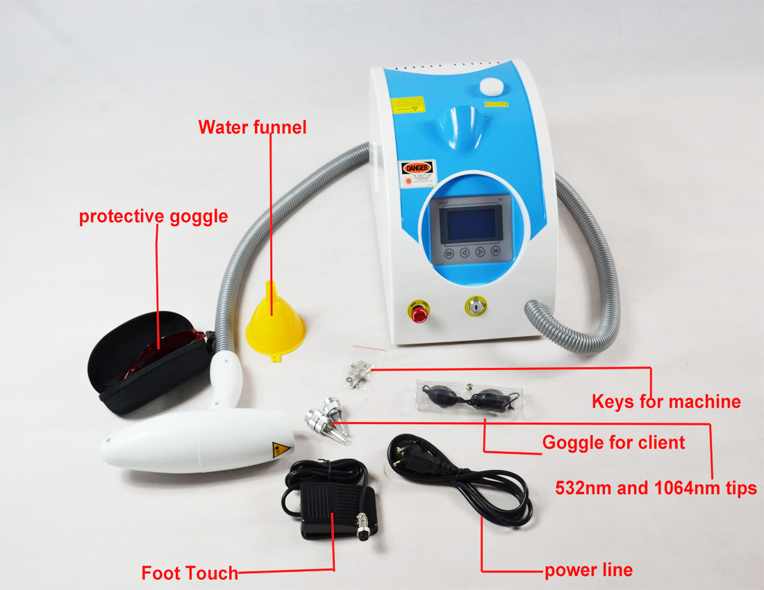 Nd: YAG laser mỹ phẩm hệ thống giới thiệu đá quý- điều chỉnh q chuyển đổi, trong đó sử dụng năng lượng cao ngay lập tức phát xạ của chùm tia laser để nghiền nát và loại bỏ các sắc tố có hiệu quả trong bệnh lý thay đổi mô. đó là một vụ nổ do chùm tia laser: các chùm tia laser ở bước sóng cố định kích hoạt bởi các cao tích lũy năng lượng có thể đạt các thay đổi bệnh lý mô qua lớp biểu bì trong một thời gian rất ngắn( chỉ 6 ns) để ngay lập tức đè bẹp màu tương ứng cơ sở, sau đó tương ứng nhóm sắc tố bị sưng lên và sự bùng nổ cuối cùng do năng lượng cao, và một phần của nhóm sắc tố sanh ra của cơ thể con người( tại nông biểu bì), và phần còn lại( tại cơ sở mô) nhóm sắc tố sẽ trở thành hạt rất nhỏ trước khi nuốt chửng bởi các tế bào của con người sẽ được thải ra cuối cùng của cơ thể con người thông qua hệ thống bạch huyết lưu thông. Các sắc tố của các mô bệnh lý sẽ phai màu cho đến khi nó biến mất. Và xung quanh các mô bình thường sẽ không bị hủy hoại vì họ sẽ không hấp thụ laser bước sóng cố định ở đó.
